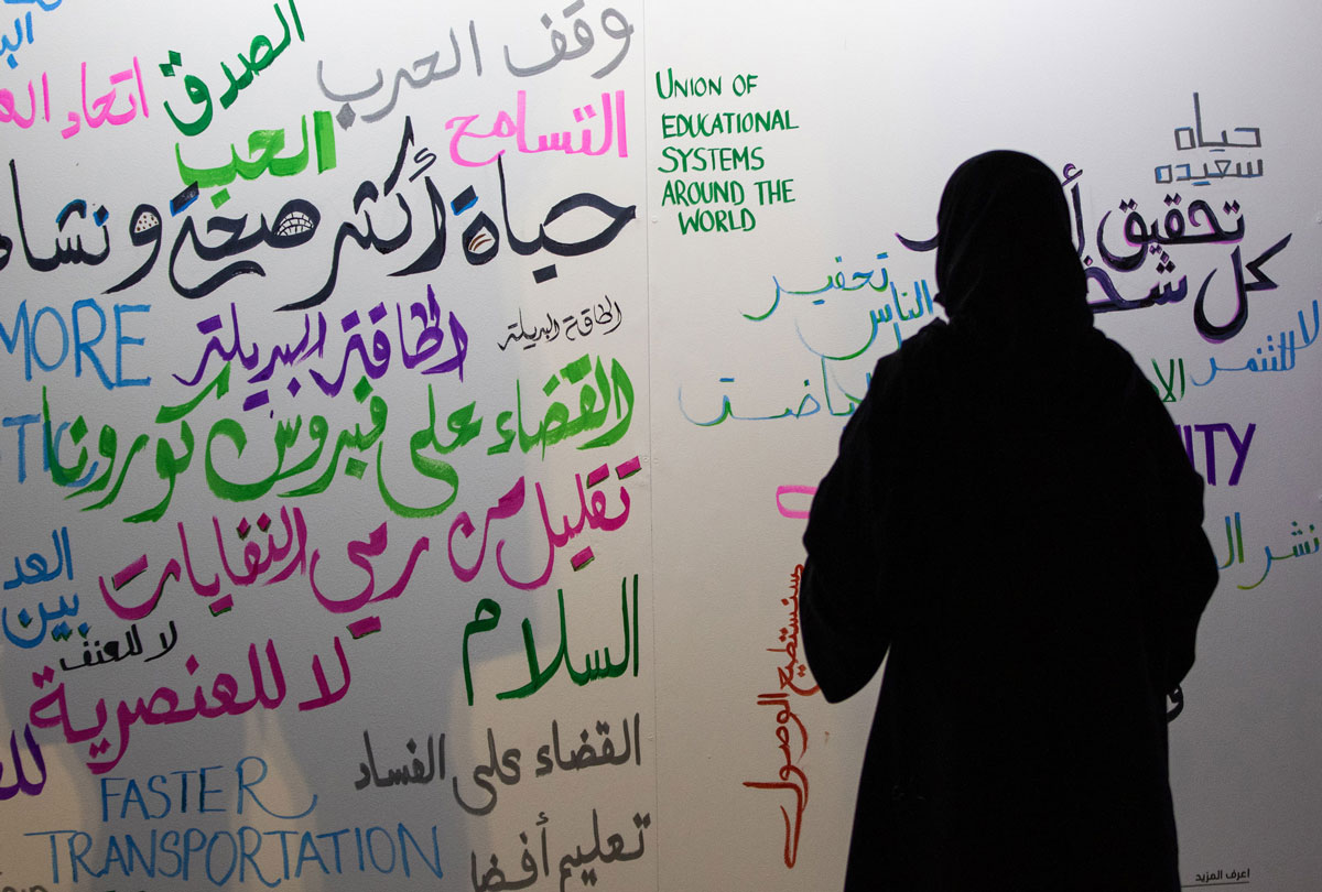 Continuing the sporting theme, football fans arriving at the Education City Stadium – housed at QF – for FIFA Club World Cup Qatar 2020™ matches were invited to engage with QF’s Students of Change campaign, which empowers people to recognize how they can be a diver of positive change. Among the QF-organized activities on the stadium route was a graffiti wall on which fans penned the change they want to see in the world.