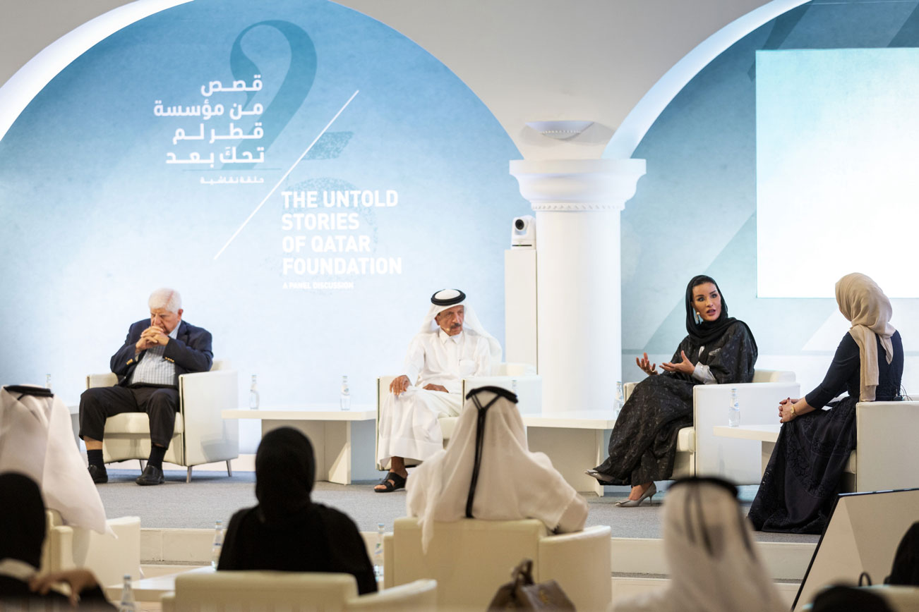 Her Highness was joined by some of the central figures in QF’s establishment for the discussion, and explained the purpose of QF by saying: “We thought of it as an Arab-Islamic renaissance project, based in Qatar, to promote sustainable development in the Arab world by creating positive change from an academic, research, and societal perspective.”