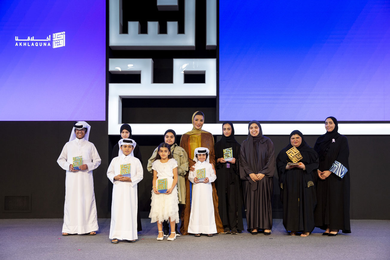 The ceremony saw Her Highness Sheikha Moza bint Nasser award the latest winners of the Akhlaquna Award and Akhlaquna Junior Award, which respectively recognize young people aged 15-24 and school students aged 7-14 who inspire and improve others through their behaviors, ethics, mindsets, and devotion to creating positive social impact.