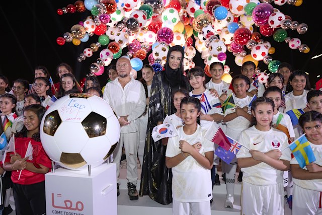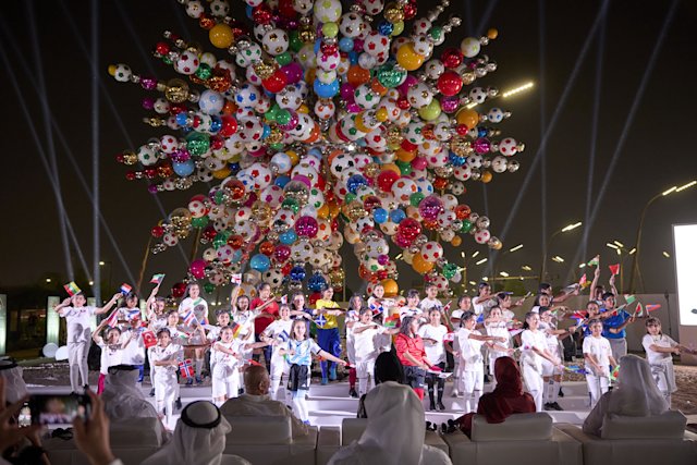 Inaugurated by Her Highness Sheikha Moza bint Nasser, Chairperson of Qatar Foundation, in October, Come Together – designed by leading South Korean artist Choi Jeong Hwa – is made up of workers’ helmets, mirror balls, and traditional Qatari objects. Resembling a dandelion spore, it represents the excitement, passion, and joy that FIFA World Cup Qatar 2022™ fans spread across the world.